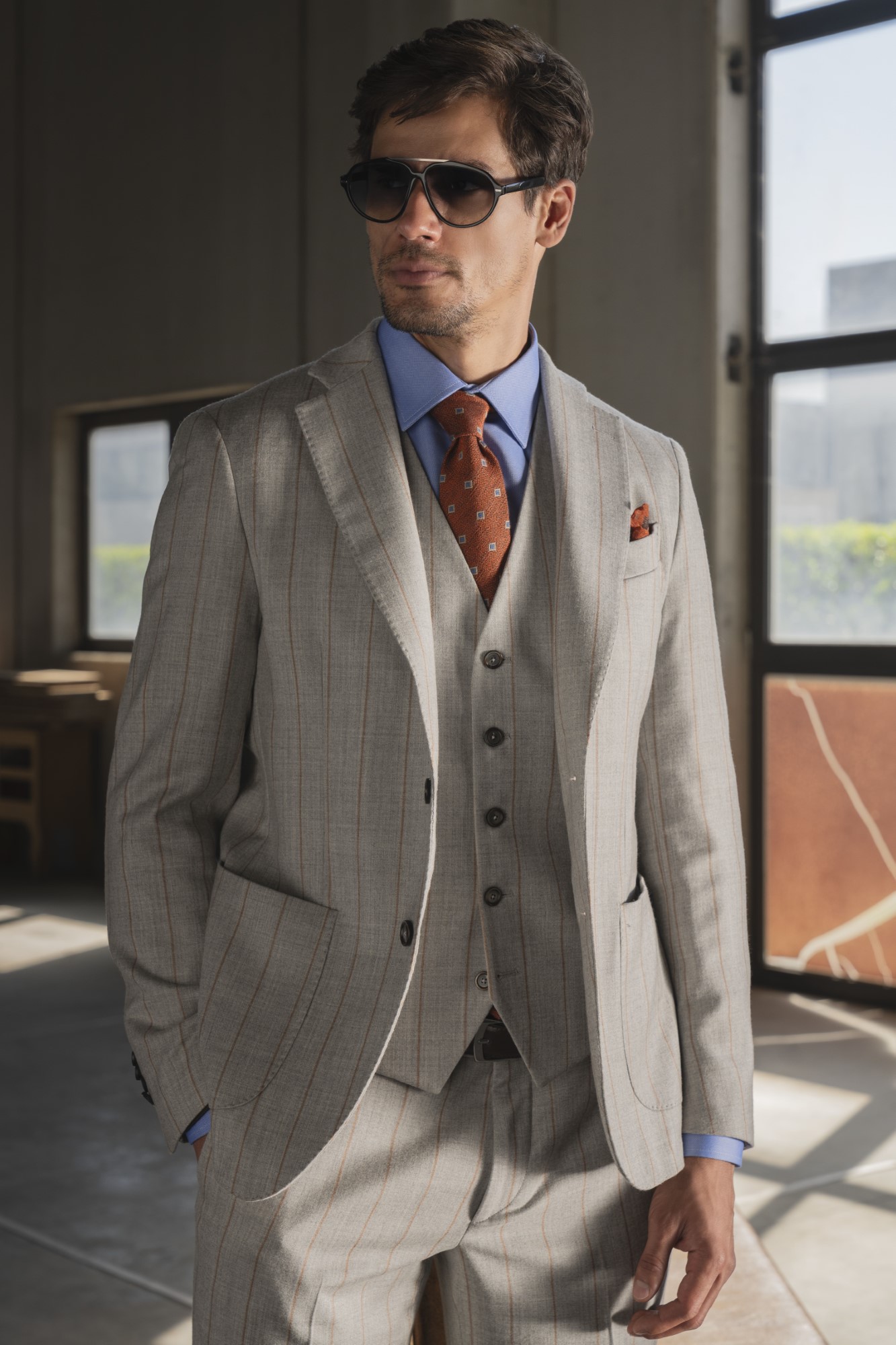 Il nostro pantalone rimane sempre molto asciutto e proposto in diverse conformazioni, adatto sia al giovane che all’uomo più classico e raffinato. La giacca e l’abito doppio petto sono il punto forte della collezione e sono realizzati con tagli morbidi e rever molto pronunciati.