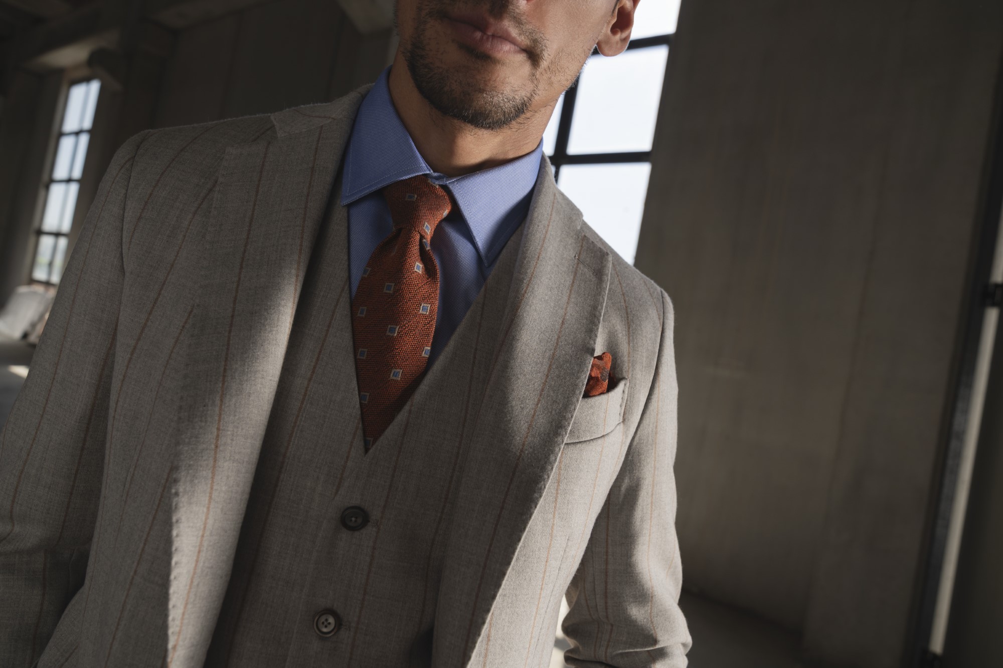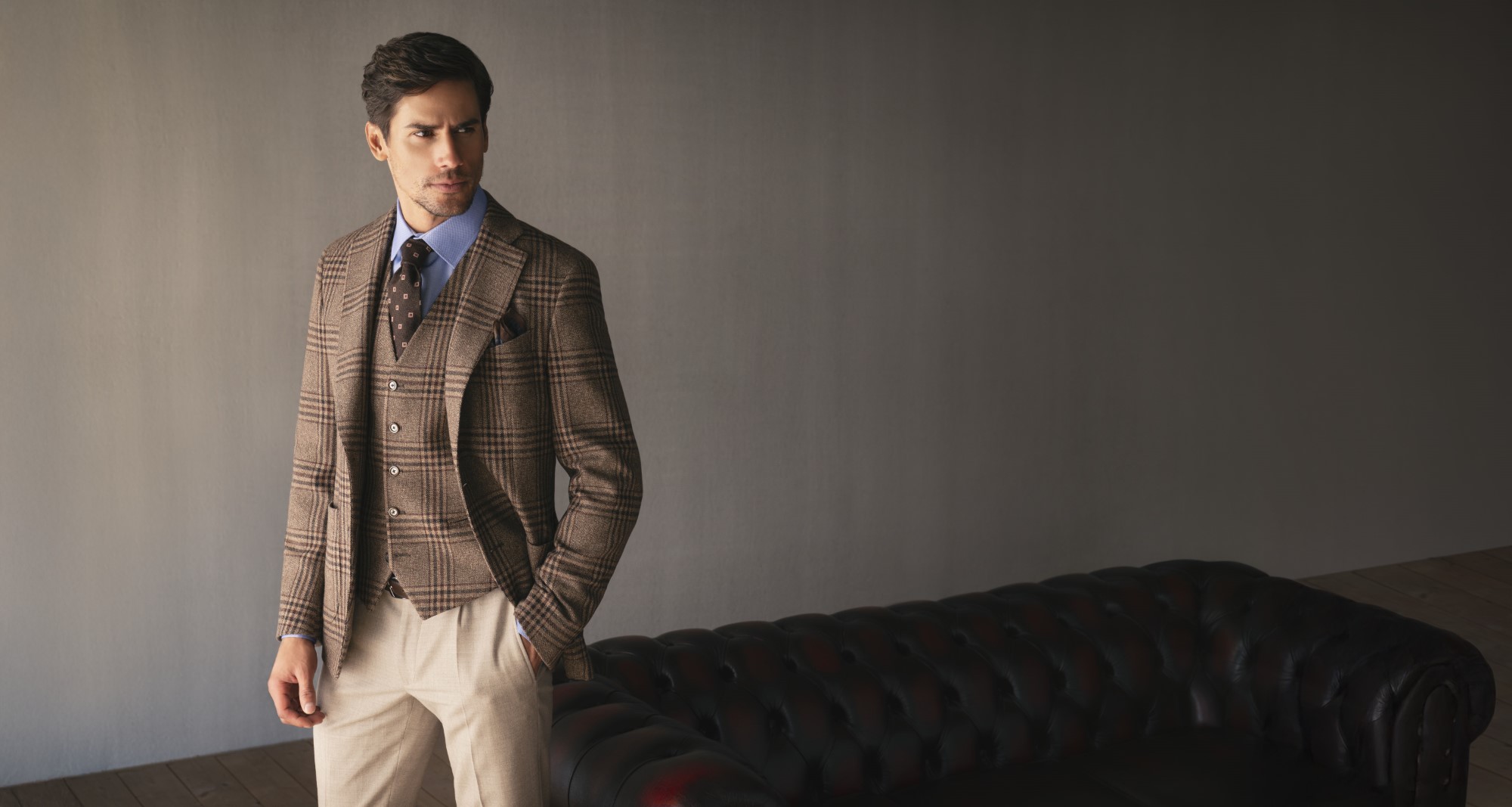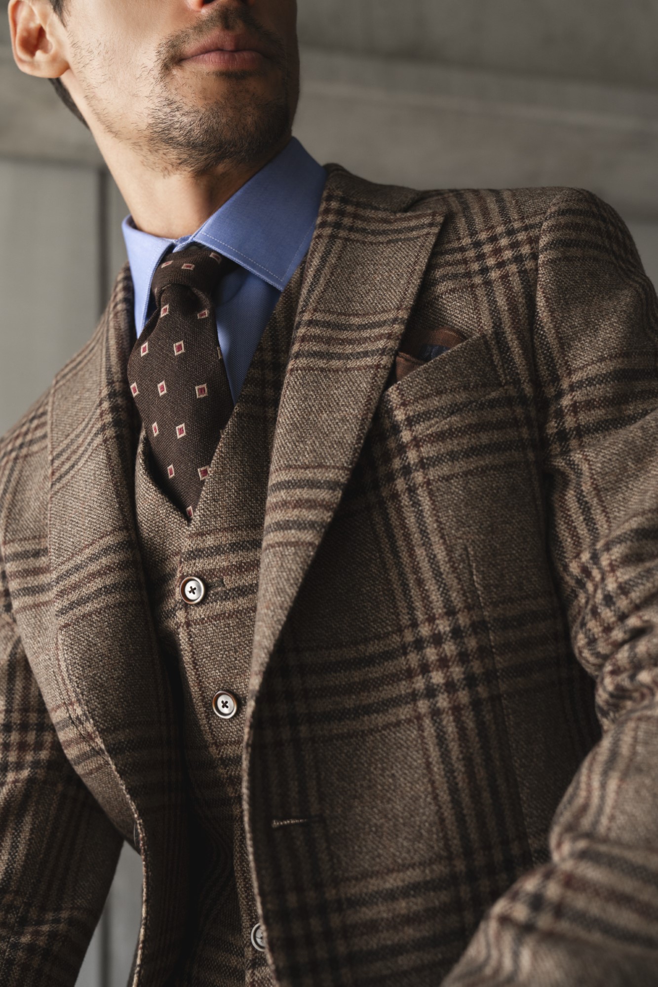 Per il completo sartoriale la nuance colore che predomina è certamente il marrone. Colore che rende l’idea del caldo e che conferisce al capo un tocco di prestigio e di raffinatezza. Questo tono colore è perfetto per l’abito e la giacca sartoriale che trovano l’abbinata ideale con i toni caldi del beige e del bianco panna.